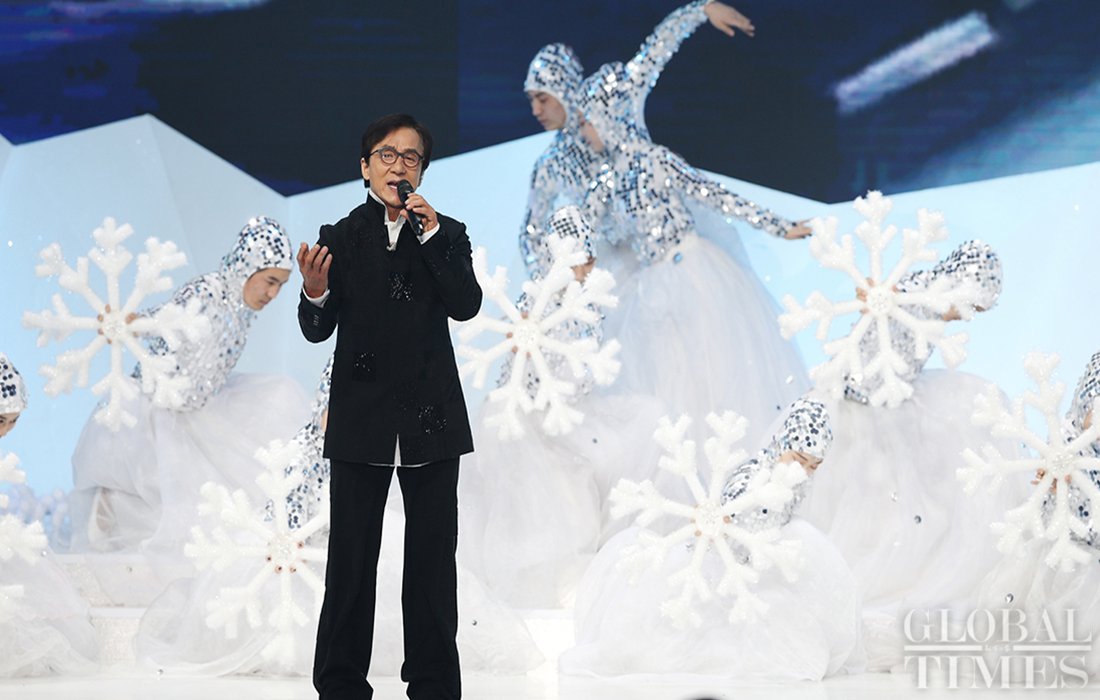 Jackie Chan, Chinese movie and kung fu star, sings at the ceremony in Beijing on December 15. Photo: Cui Meng/GT figcaption >