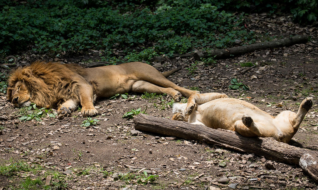One of the African lions sleeps in funny positions at Hangzhou Zoo on May 6. Photo: CFP figcaption >