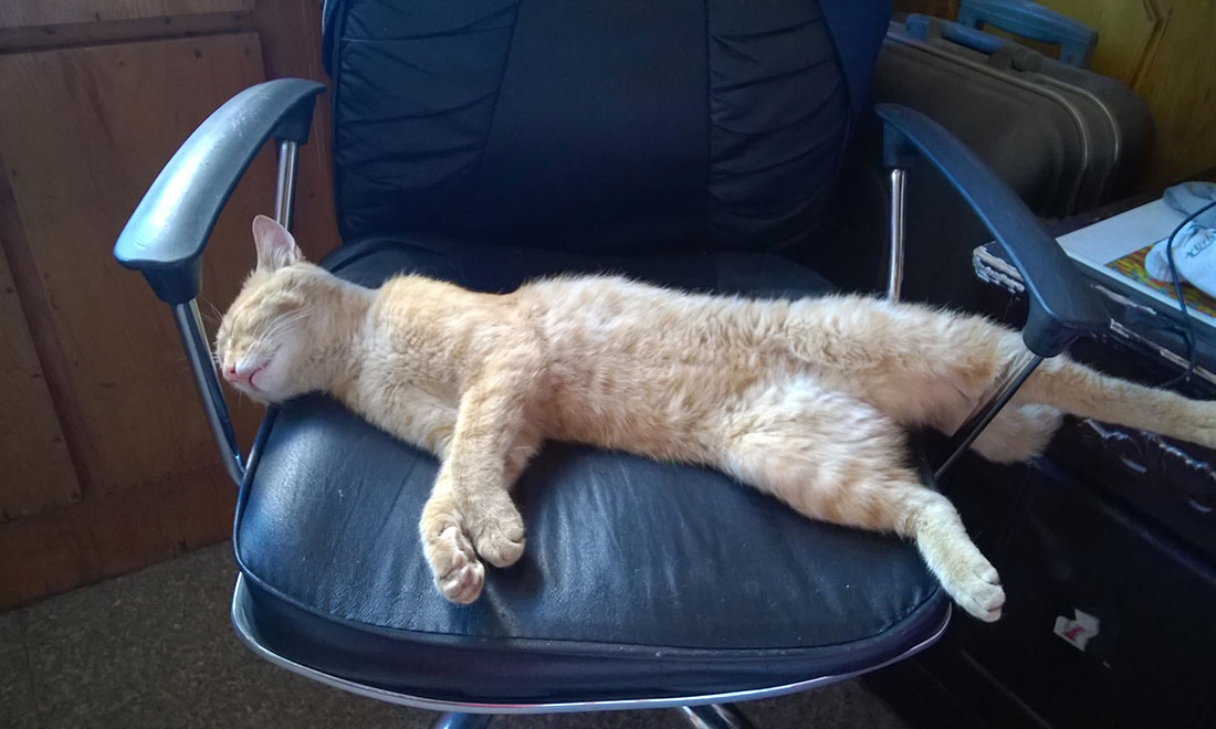 A cat takes a nap on chair in Lianyungang, East China’s Jiangsu Province on May 24. figcaption >