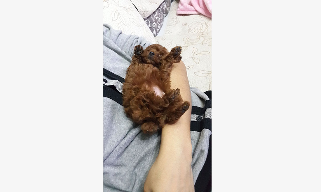 A dog sleeps paws up in its owner’s arms on February 25, 2014. Photo: Ge Lili/GT figcaption >