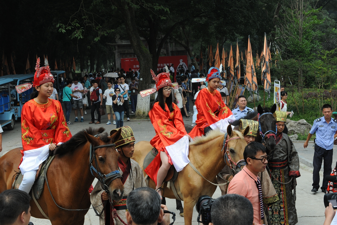 Chen Fengzhu (middle) and Liu Shihao (right), Hubei Province’s top scorers in this year’s gaokao liberal arts and science portions respectively, ride horses in a parade on July 9 in Xiangyang, Hubei Province. Photo: CFP figcaption >