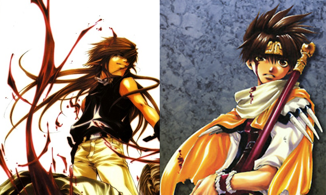 1999 SaiyukiIllustrator Kazuya Minekura portrays Sun Wukong as a 500-year-old childlike monster that friendly, cheerful and even na?ve sometimes, until his golden headband is removed. He then turns into a ruthless killing machine (left). Tang Seng also gets a makeover in this series, where he is depicted as a jeep-driving, revolver-toting warrior. Photo:saiyuki.wikia.com figcaption >