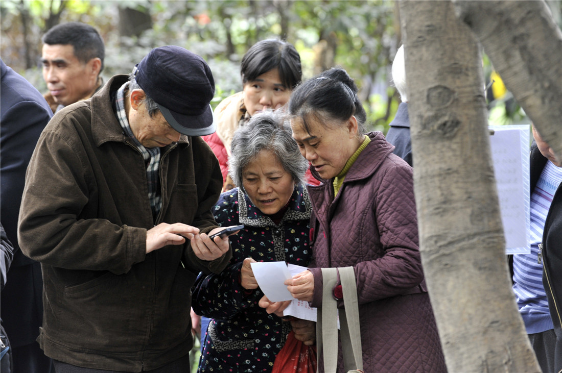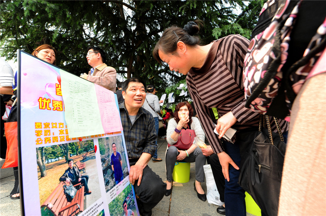 Parents take part in a matchmaking event for their children in Hangzhou, Zhejiang Province on April 25, 2015. Photo: CFP figcaption >