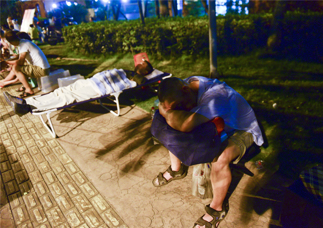 Parents rest outside a local high school in Chengdu, Sichuan Province on June 28, 2015 while waiting for enrollment to begin. The results of the high school entrance examinations were released on June 29, but many parents had already queued outside the high school to learn about enrollment policy as soon as possible. Photo: Western China Metropolis Daily/CFP figcaption >
