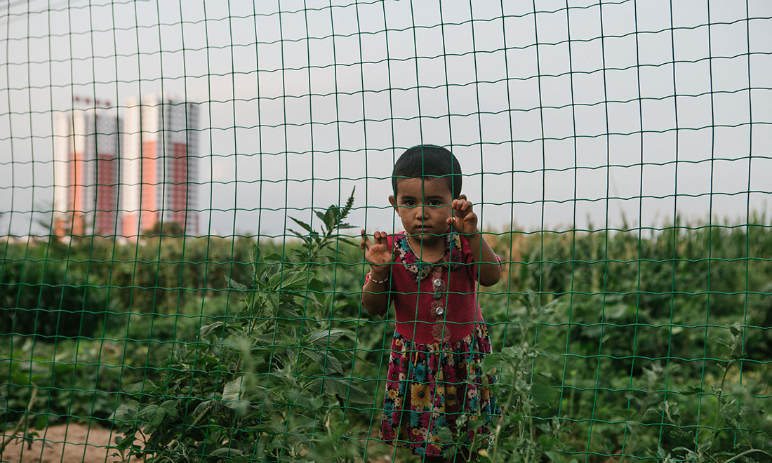 A little Uyghur girl plays alone on a plot of land near her house on July 28. Photo: Li Hao/GT figcaption >