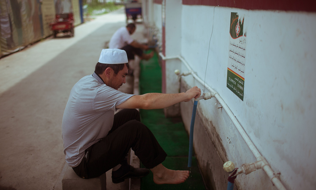 Muslims wash up before prayers on July 31. Photo: Li Hao/GT figcaption >