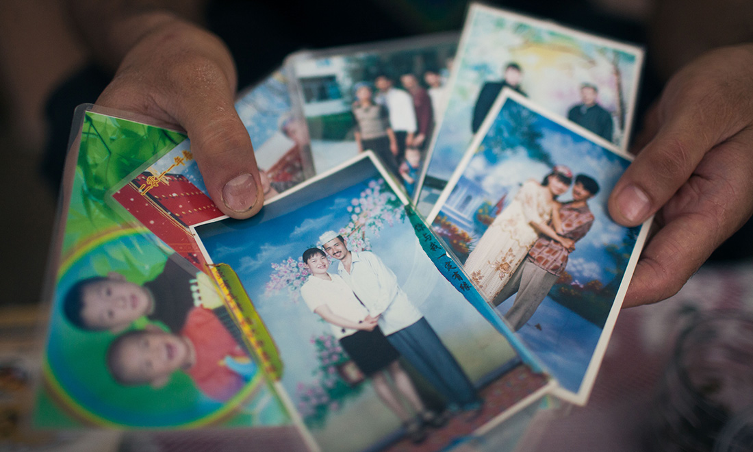 Anur shows a collection of family photos on July 29. Photo: Li Hao/GT figcaption >