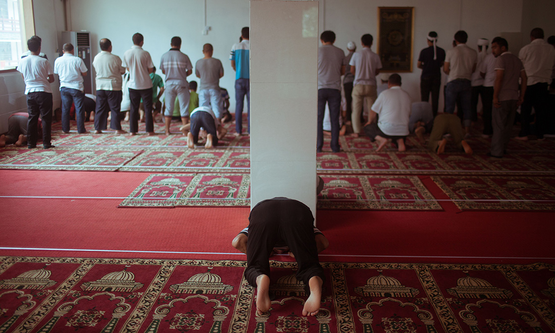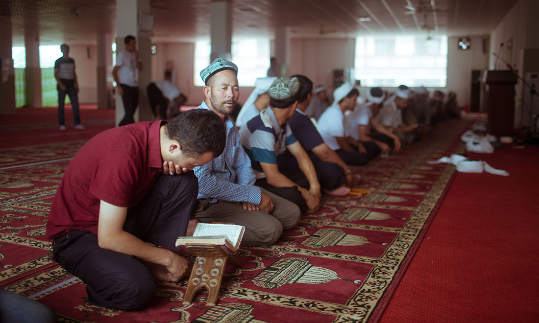 Uyghur Muslims pray in a mosque on July 31. Photo: Li Hao/GT figcaption >