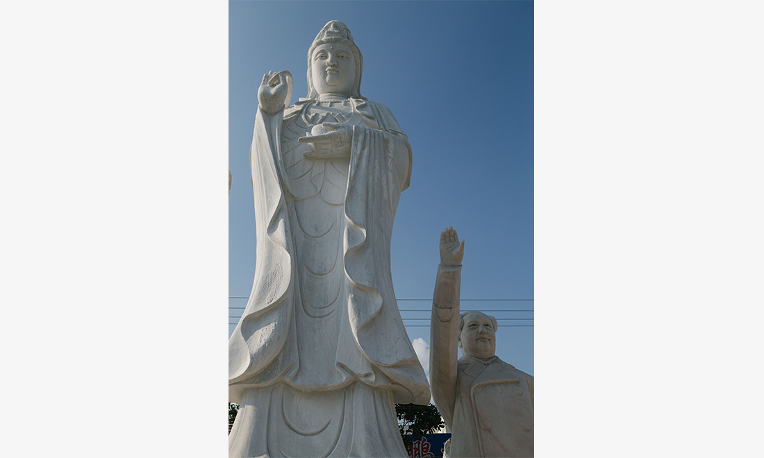 Two statues of Chairman Mao Zedong and a Buddhist figure stand together on the outskirts of Shifosi town on July 31. Photo: Li Hao/GT
