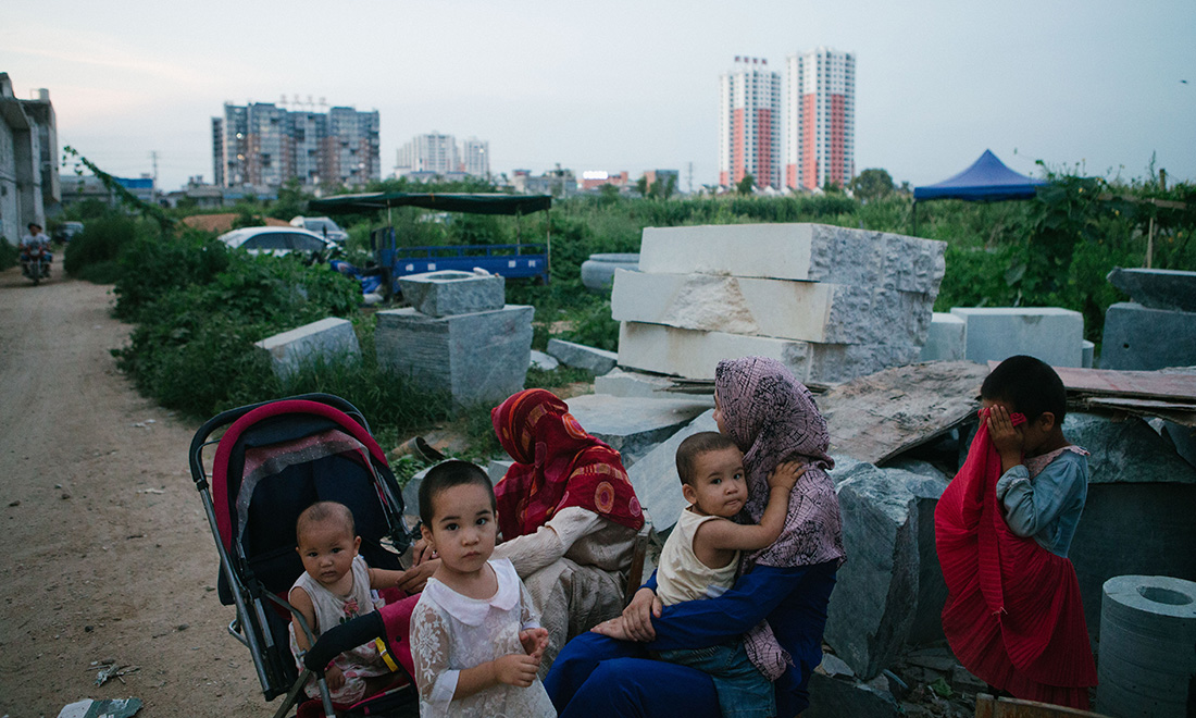 Two Uyghur women care for their children near their homes on July 29. Photo: Li Hao/GT figcaption >