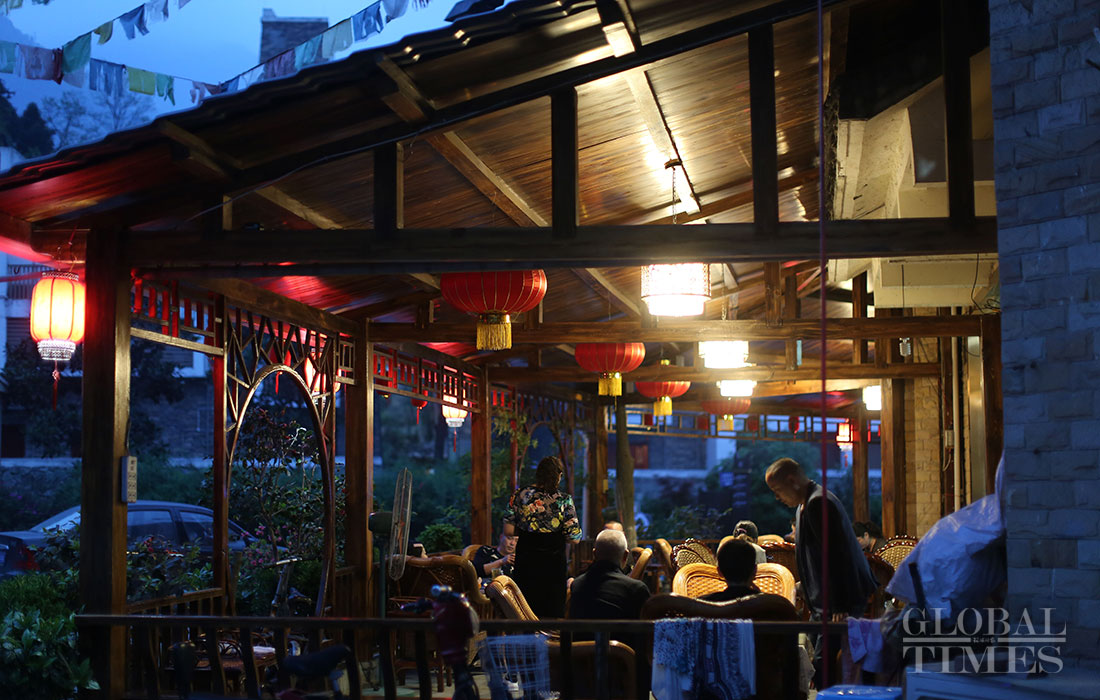 Local residents enjoy their time leisurely at a tea house in Yingxiu, Wenchuan County, Sichuan Province prior to the 10th anniversary of the 2008 Wenchuan Earthquake. Photo: Yang Hui/GT figcaption >