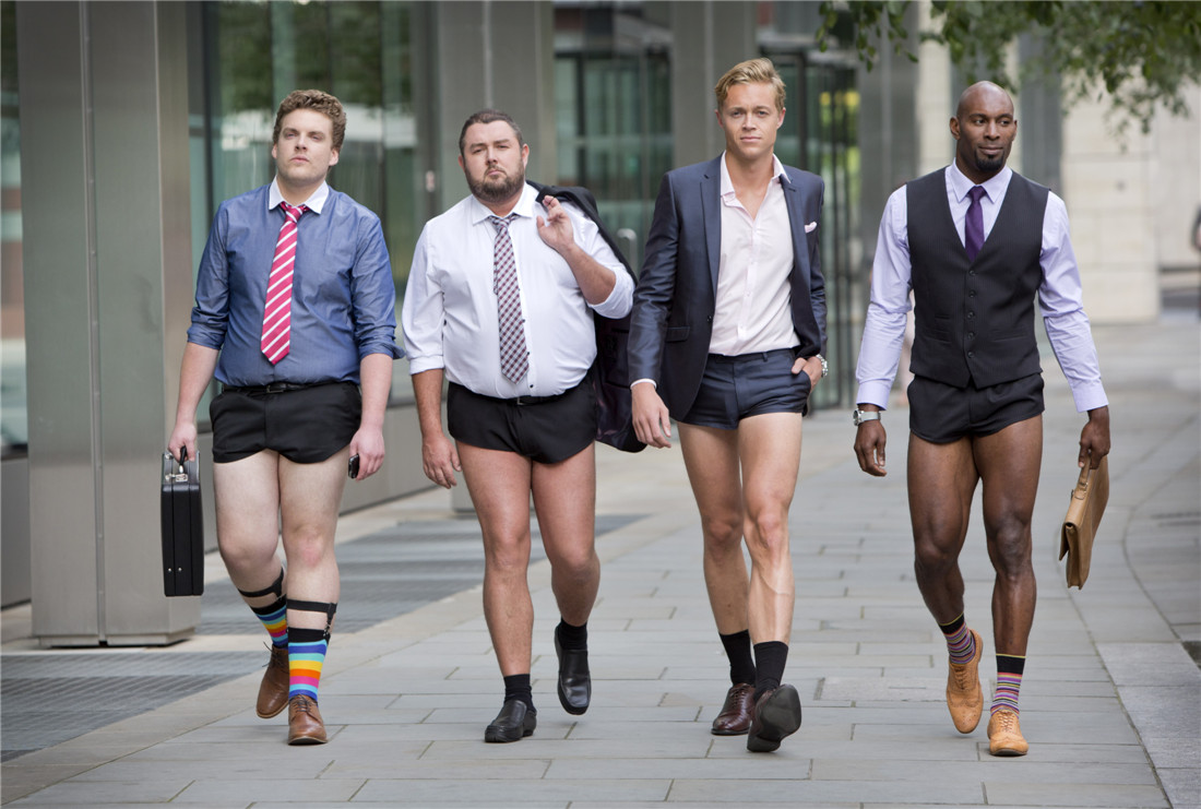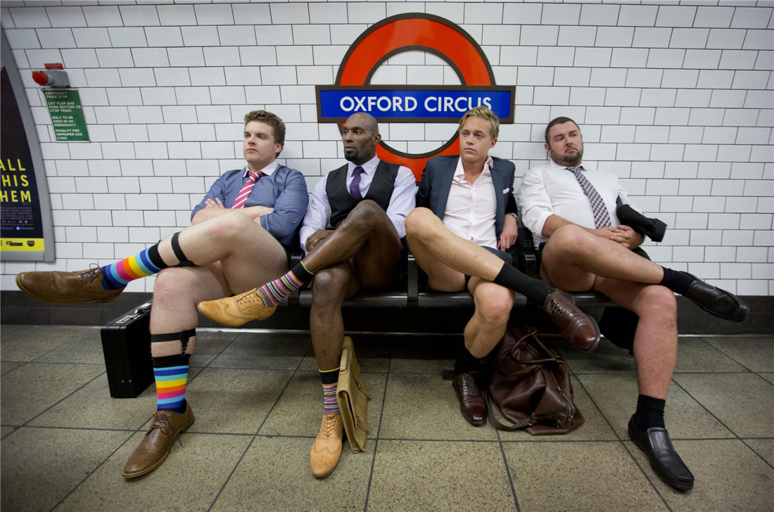 Models travel through The London Underground in short shorts on July 29, 2014 in London, England as an elaborate marketing stunt by Channel 4 to launch its new original Shorts programs. Photo: CFP figcaption >