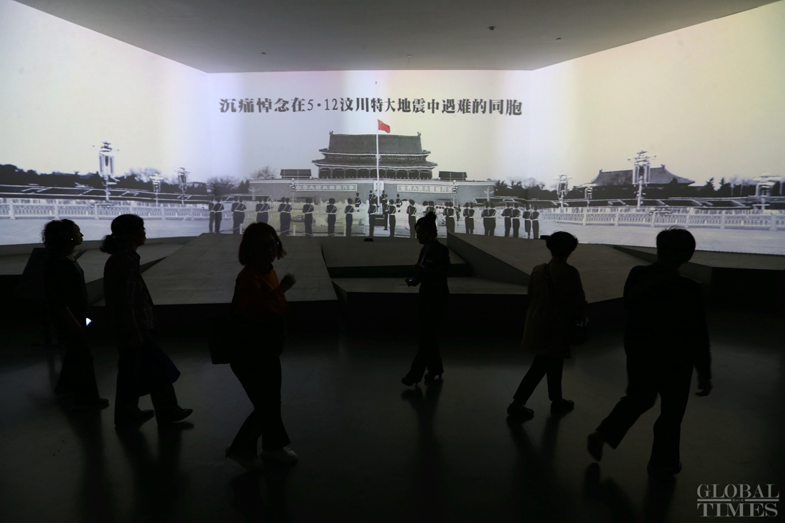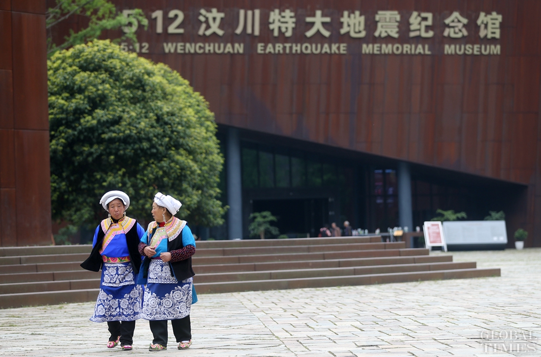Two Qiang women walk together at the Wenchuan Earthquake Memorial Museum in Wenchuan County, Sichuan Province. Photo: Cui Meng/GT