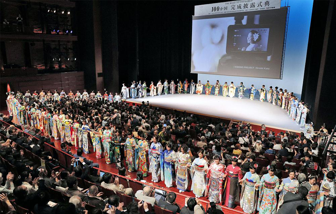 High school students pose in kimonos with designs that represent 100 of the 196 countries expected to join the 2020 Tokyo Olympics and Paralympics during an event in Kurume, Fukuoka Prefecture, southwestern Japan, on April 29, 2018. Photo: VCG figcaption >