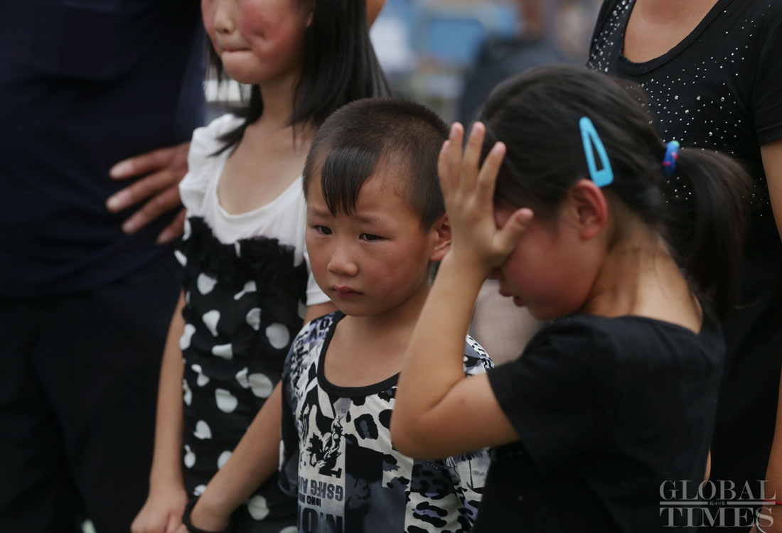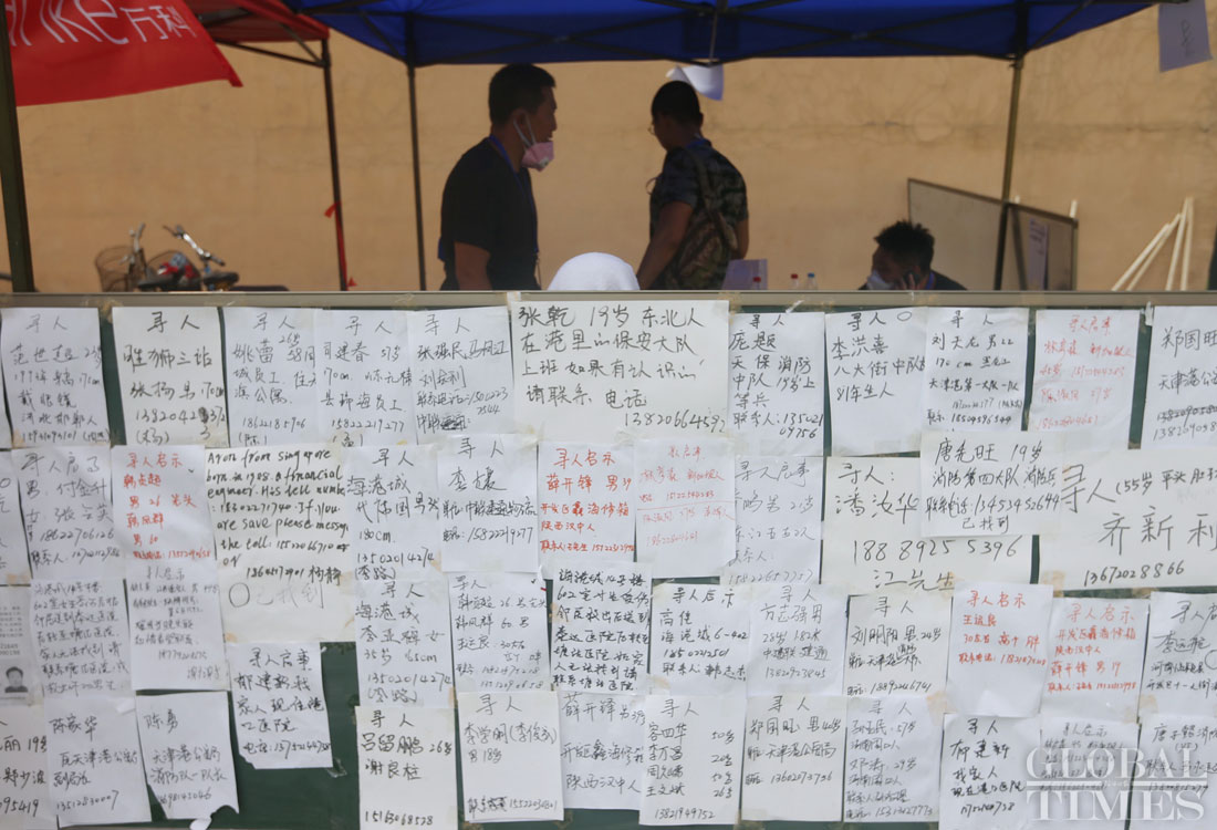 Notices of missing persons cover a blackboard at school in Tianjin on August 15 following Wednesday’s explosion. The school in the Binhai New Area Development Zone has served as a temporary shelter for blast victims. Photo: Cui Meng/GT