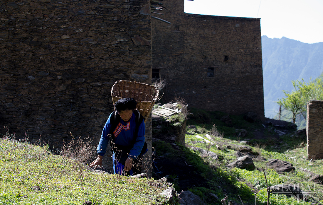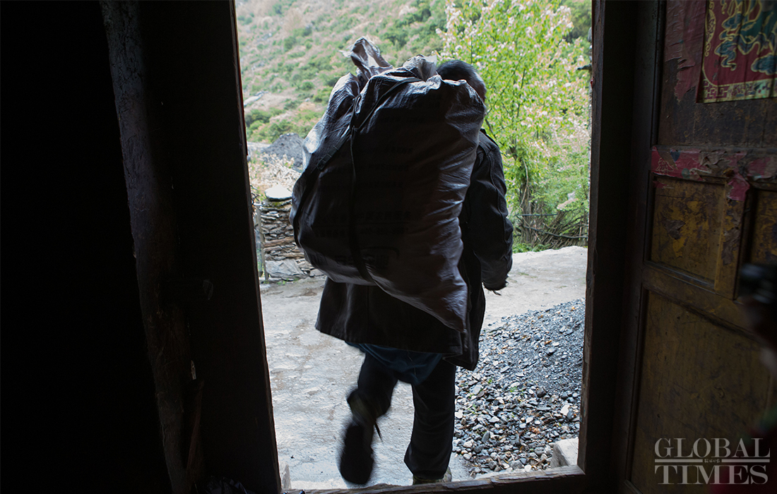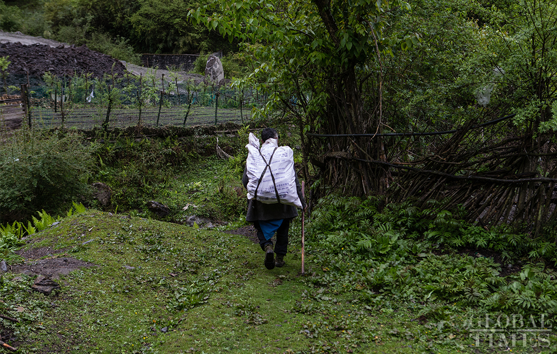 A villager carrying a basket on his back heads out to work in Xige village. Photo: Li Hao/GT figcaption >