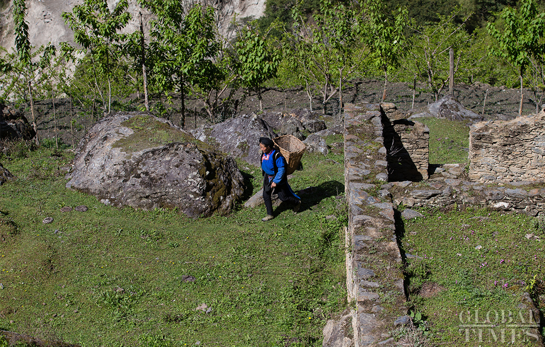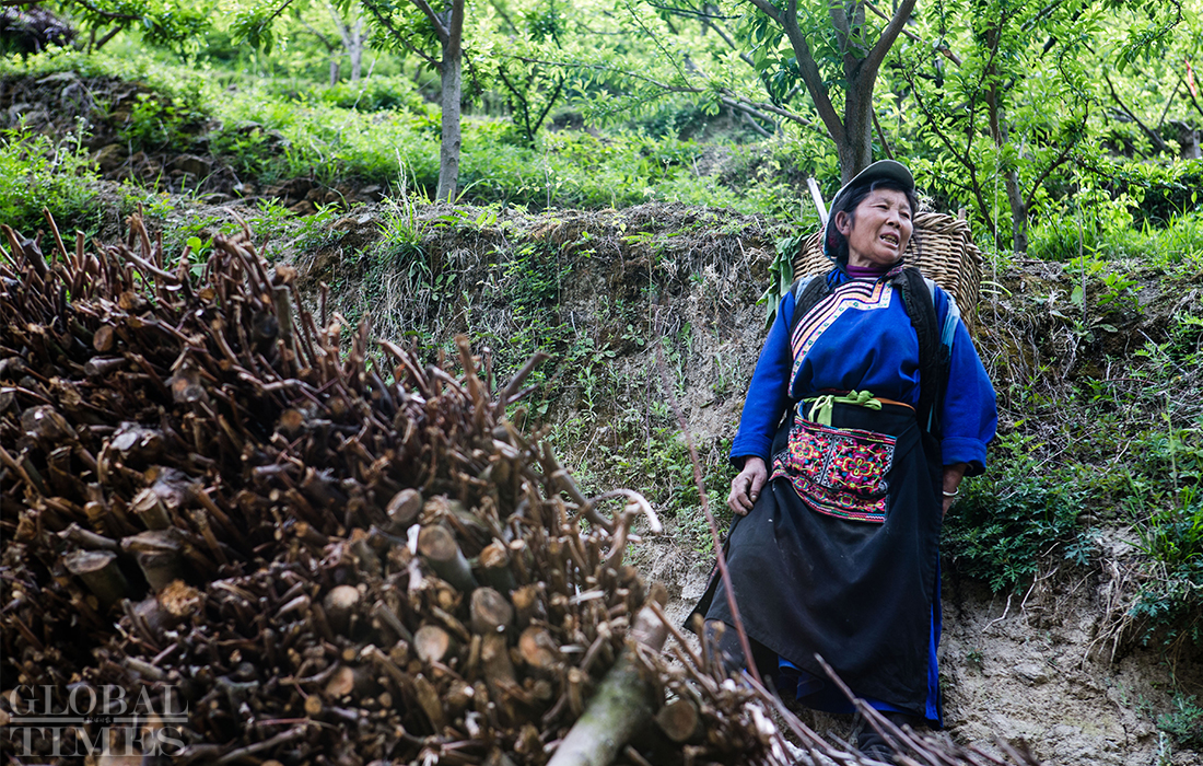 A villager walks to her orchard in Xige village. Photo: Li Hao/GT figcaption >