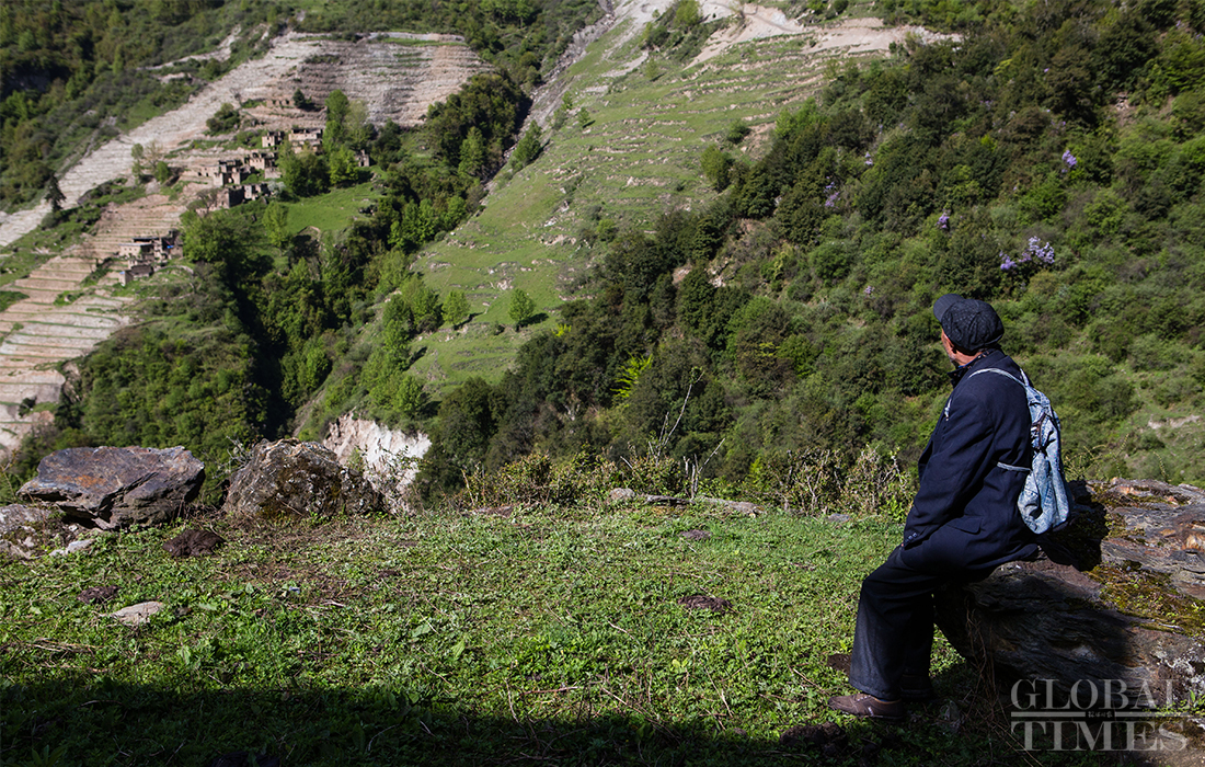 Yang Decheng looks out over an old Qiang settlement. Photo: Li Hao/GT figcaption >