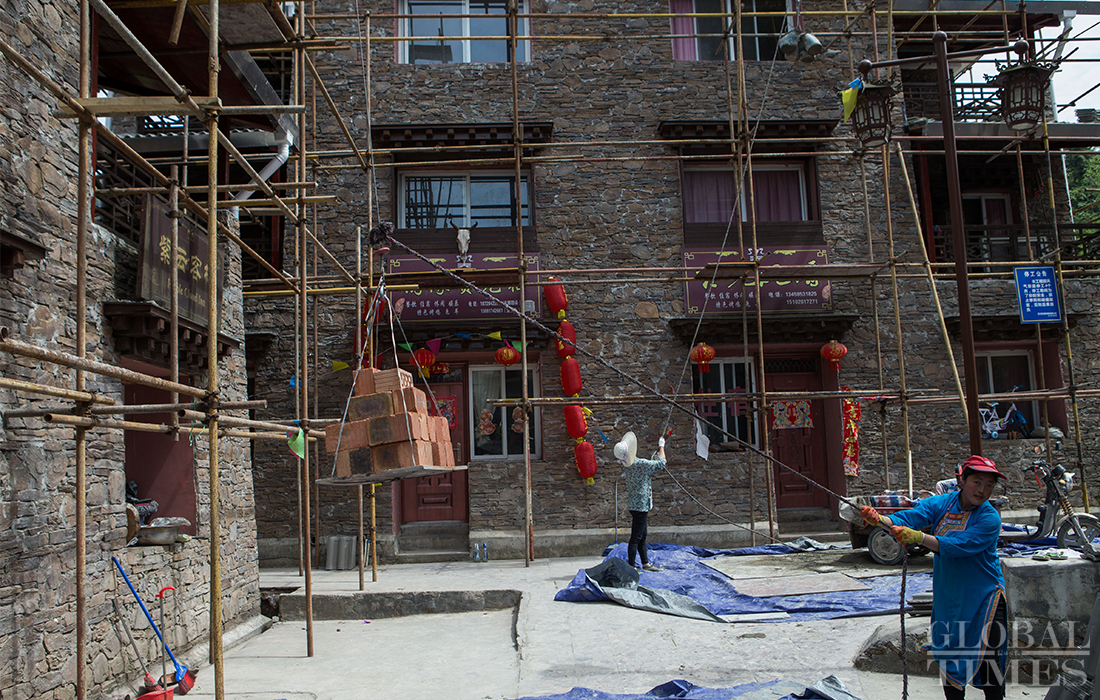 In the new village of Qionglai, locals are building to develop regional tourism. Photo: Li Hao/GT figcaption >
