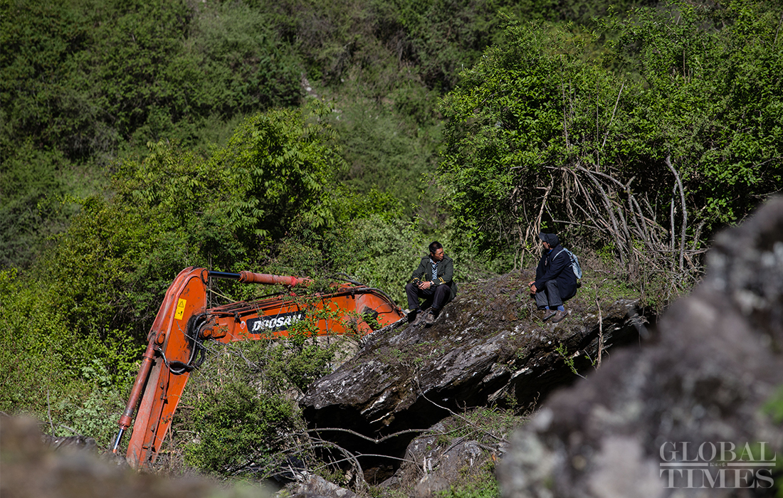 Construction equipment is operated on the site of an old Qiang house. Xige village land is being developed by Wenchuan contractors for agriculture and tourism. Photo: Li Hao/GT figcaption >