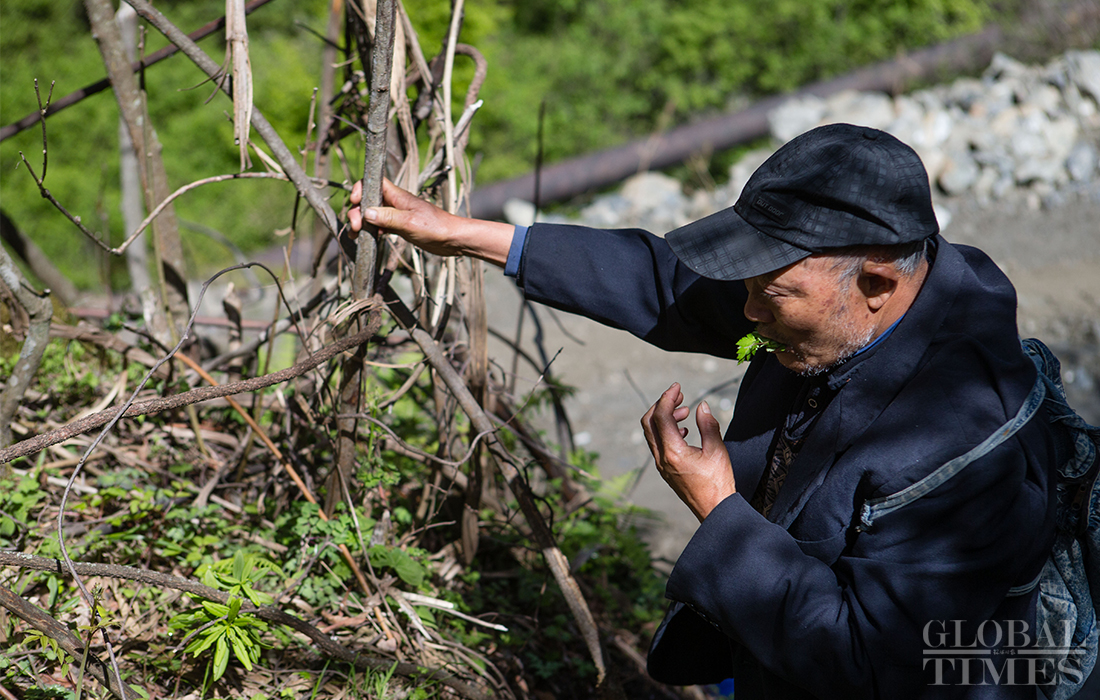 Yang Decheng is knowledgeable of local edible plants. Photo: Li Hao/GT figcaption >