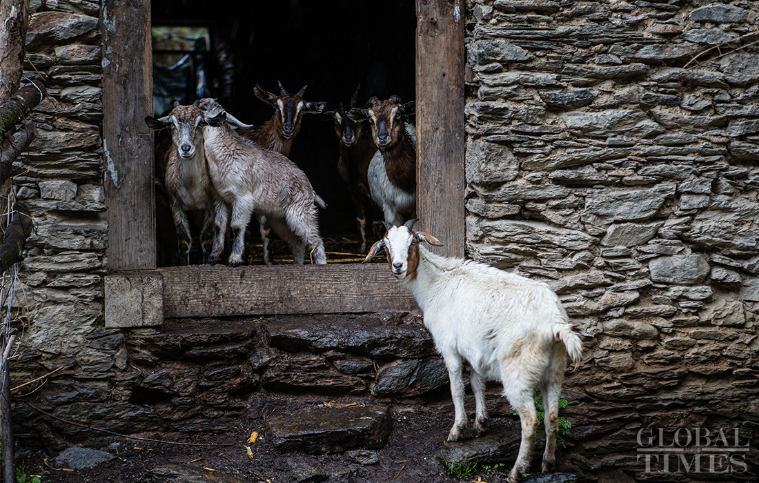 Pictured are some of the goats raised by those remaining in Xige village. Photo: Li Hao/GT figcaption >