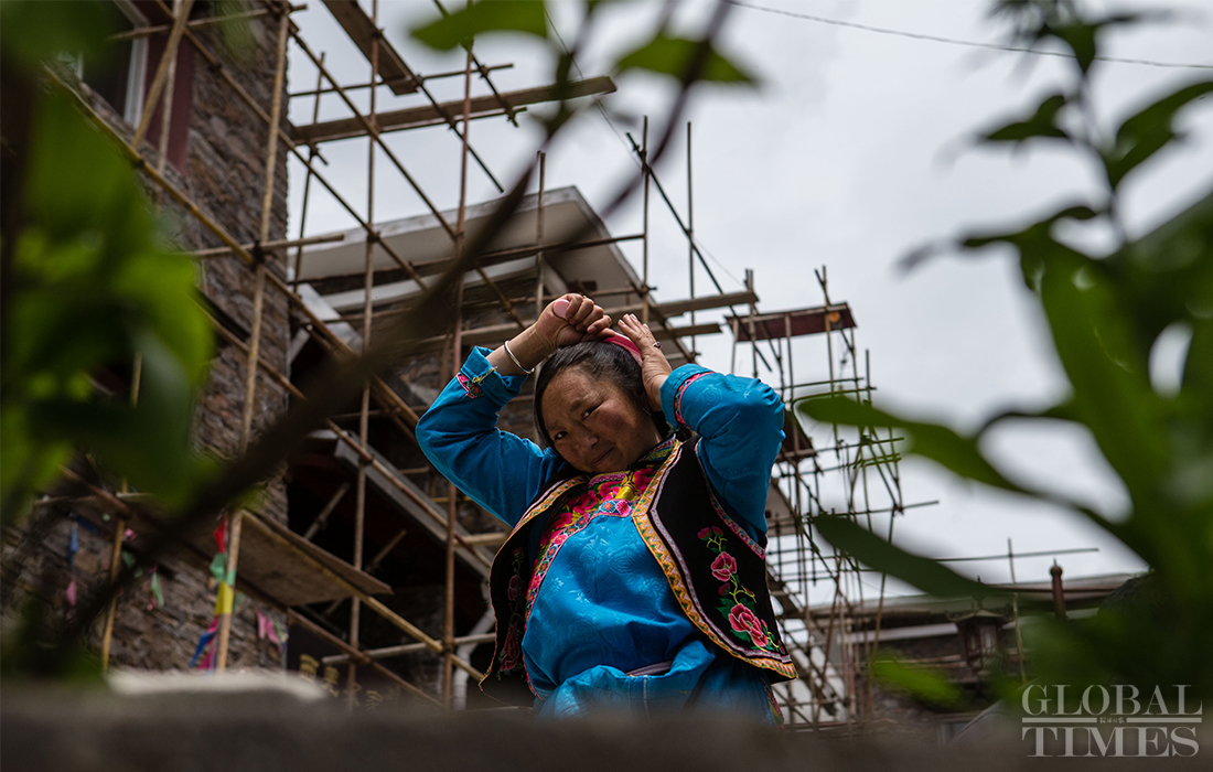 A Qiang woman combs her hair in Qionglai. Photo: Li Hao/GT figcaption >
