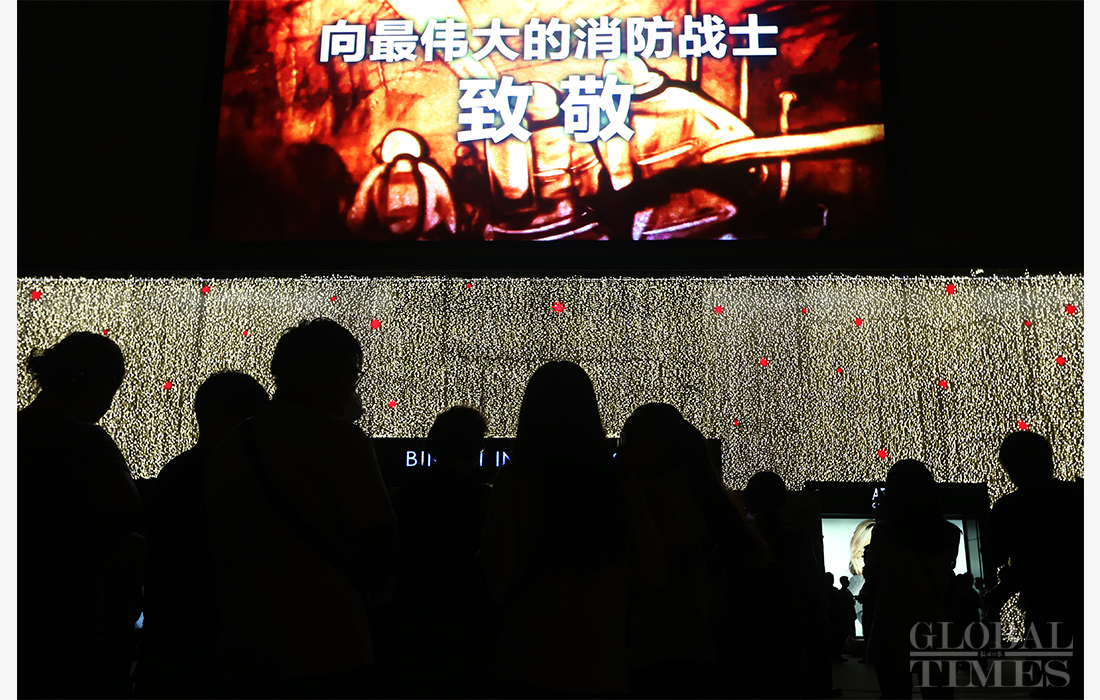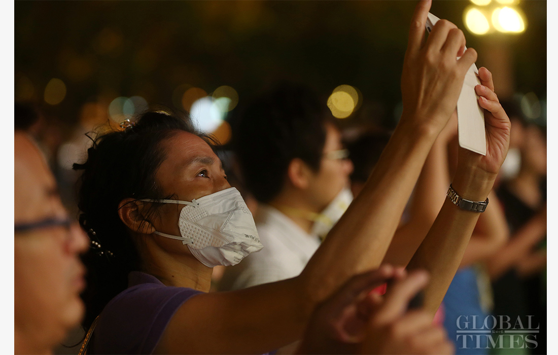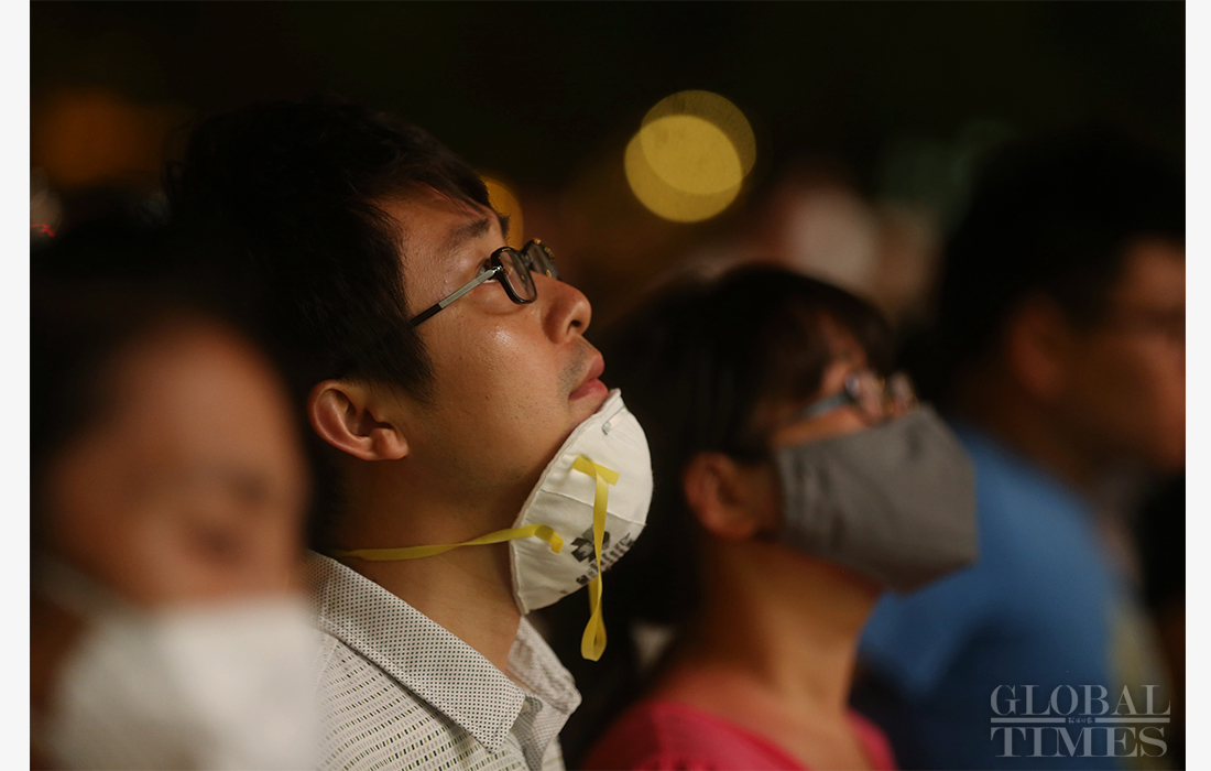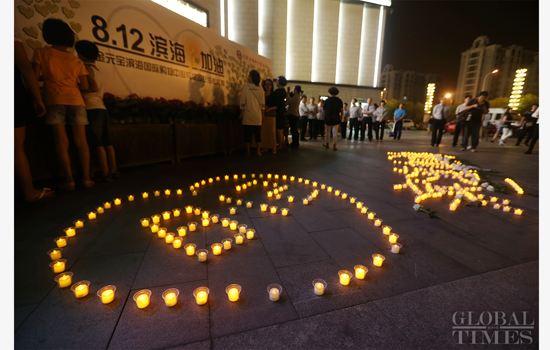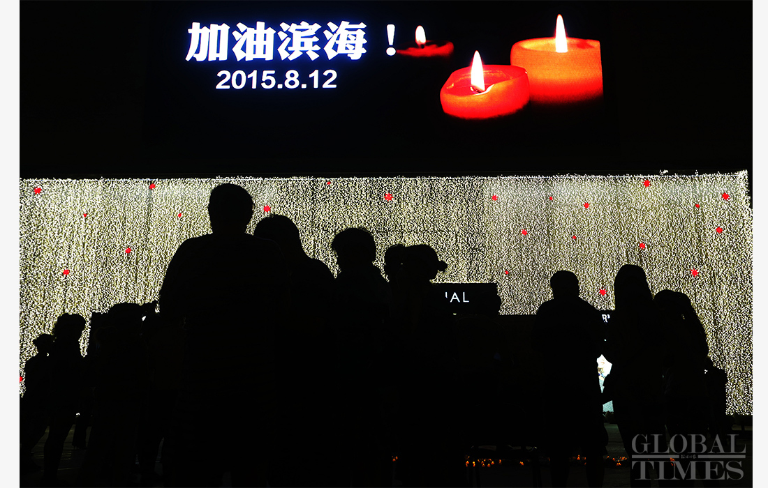 Crowds pray and hold vigils in front of Teda hospital and at a square for the victims of the Tianjin explosions on Sunday night. Passing vehicles honked their horns to pay homage. Photo: Cui Meng/GT