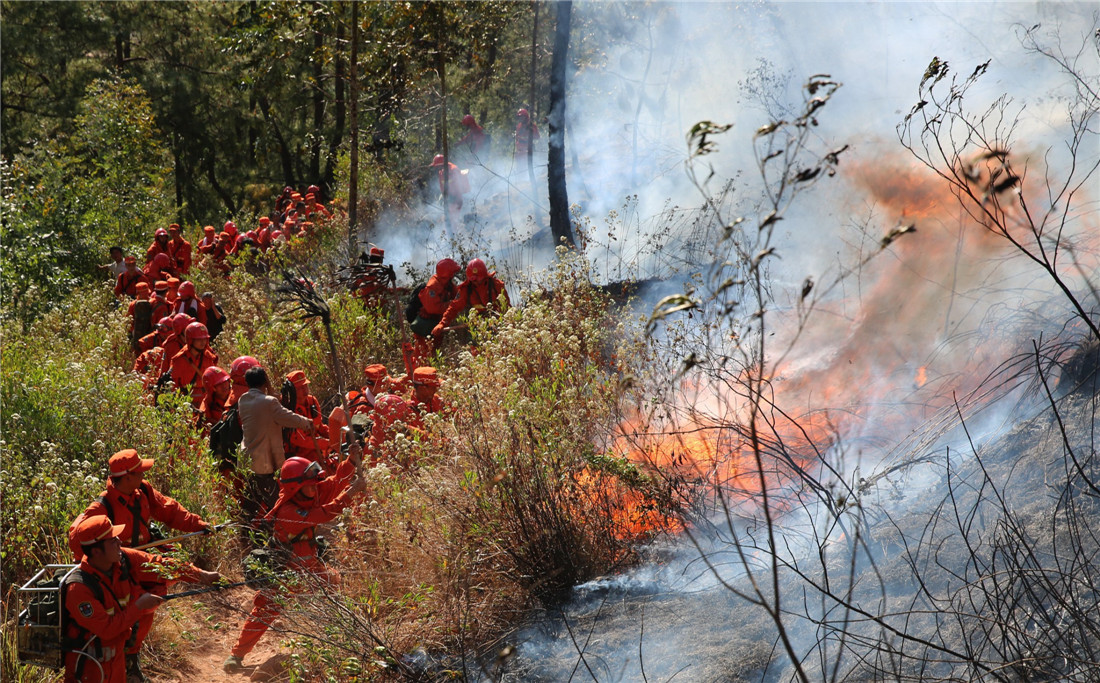 Firefighters work to stop a fire from spreading in Xichang, Sichuan Province on March 8, 2015. Photo: CFP