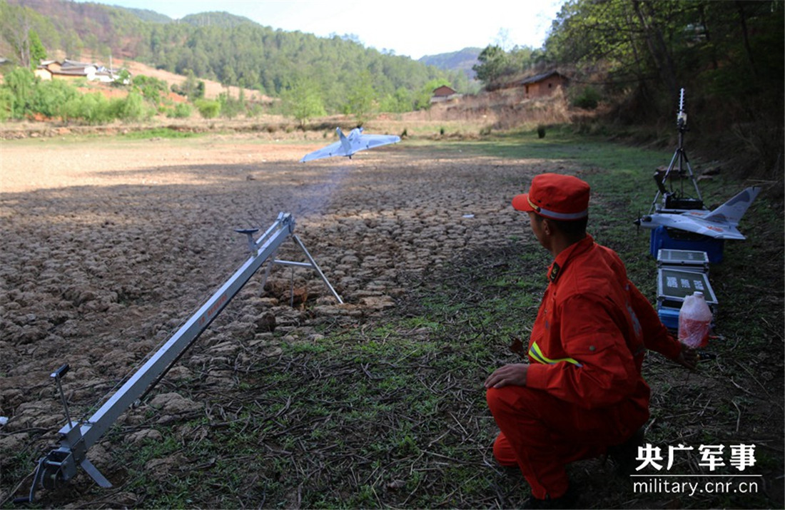 Firefighters use drones to detect fires during a drill. Photo: cnr.cn figcaption >