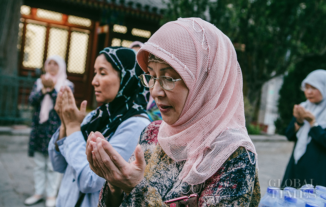 Muslim women pray at a mosque in Beijing. Photo: Li Hao/GT figcaption >