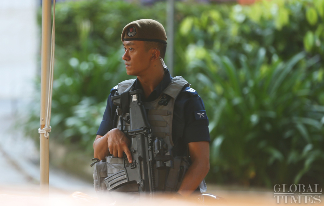A soldier from the Gurkha unit is on duty to ensure the security for the upcoming Trump-Kim summit in Singapore on Sunday. Photo: Cui Meng/GT