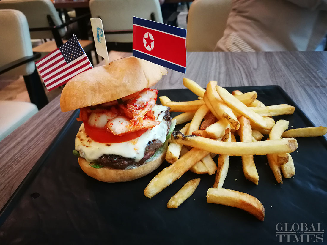 Photo taken on June 11 shows the “cowboy kimchi burger” sold at a restaurant in Singapore for 18.8 Singapore dollars ($14.09). US President Donald Trump and North Korean leader Kim Jong-un planned to meet in Singapore on June 12. Photo: Yang Sheng/GT