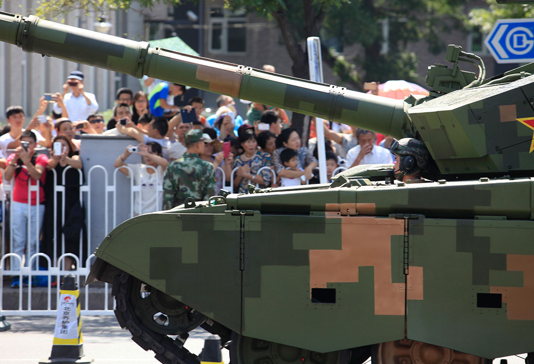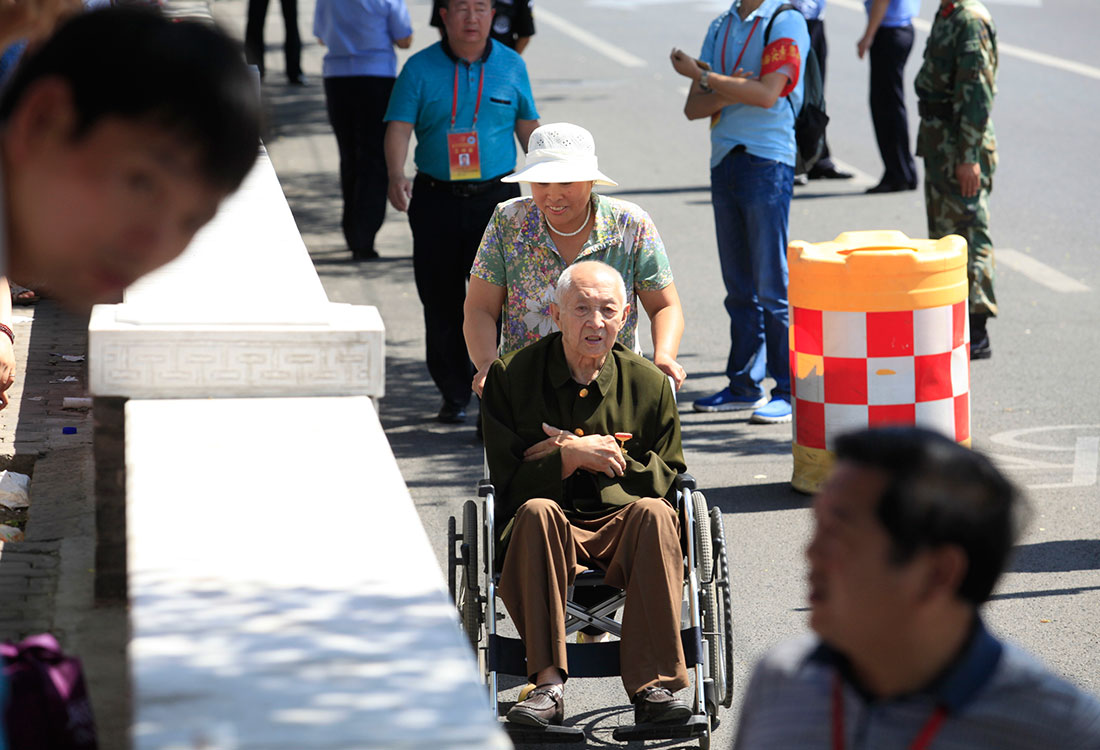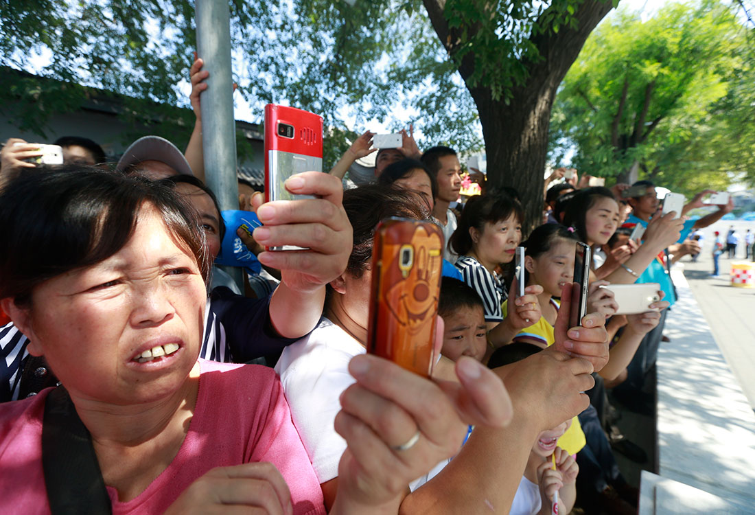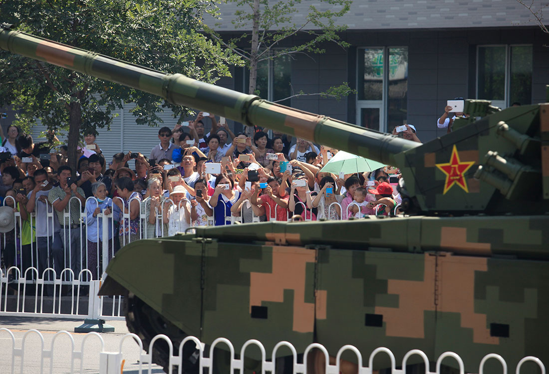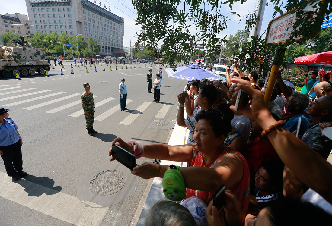 People gather at the crossroad of Ping'an Dajie and Xishiku Dajie in Beijing to watch the parade vehicles at the September 3 V-Day parade. Photos: Li Hao/GT