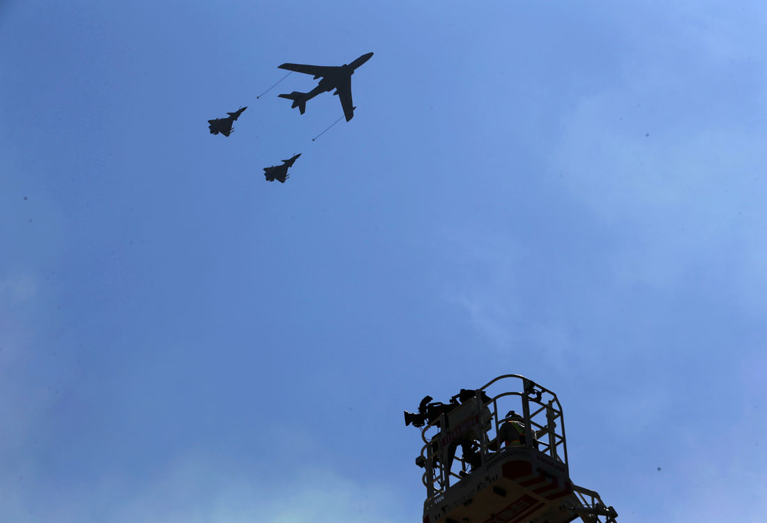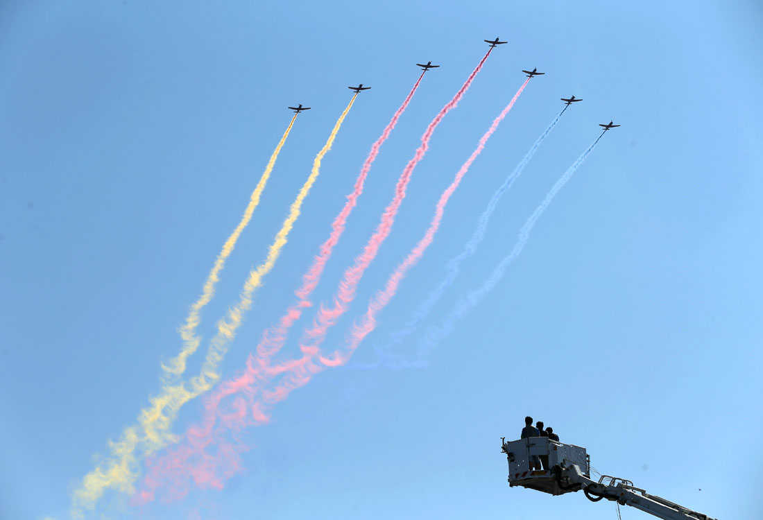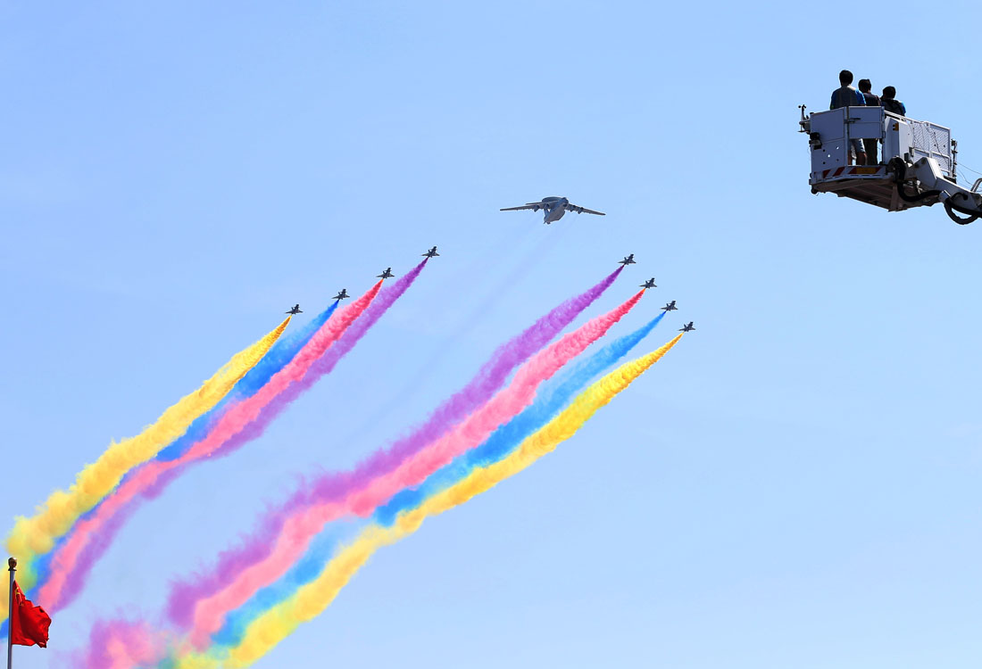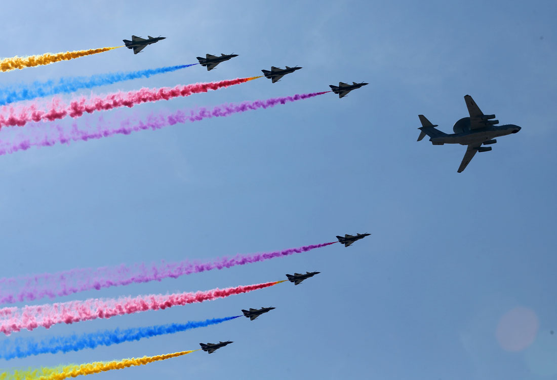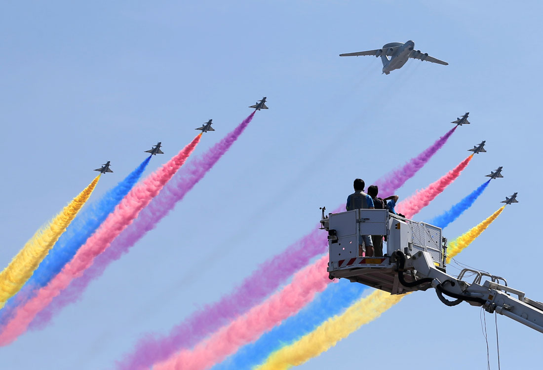 Chinese airforce puts on a colourful show for V-Day