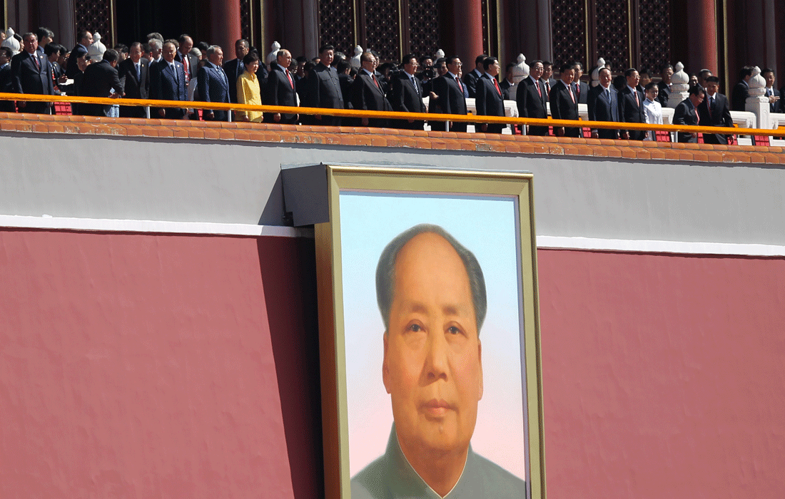 State leaders from around the world watch the parade from the front gate of The Forbidden City. figcaption >