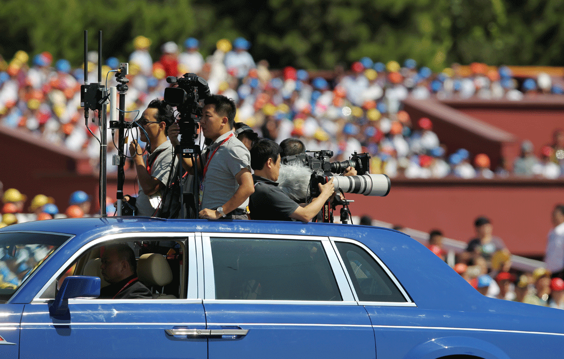 President Xi inspects the troops from a limousine that was made by the Chinese company Red Flag. figcaption >