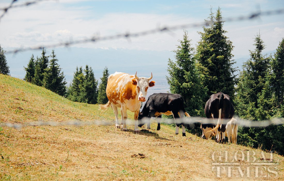 Cows from Kazakhstan graze upon the grass. Photo: Shan Jie/GT figcaption >