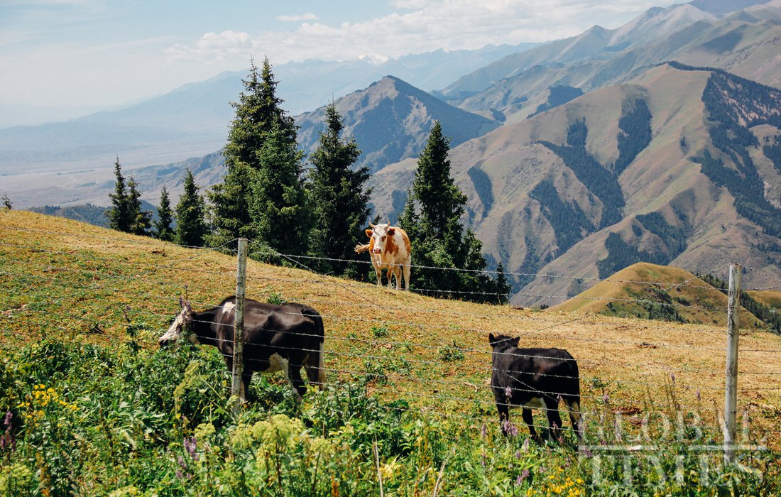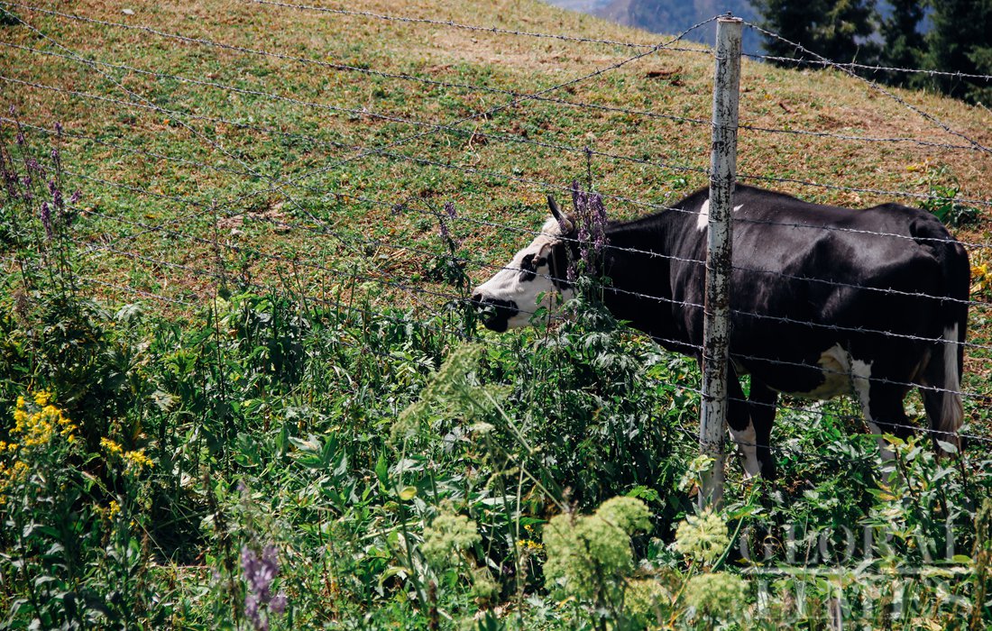 A cow from Kazakhstan grazes on China’s side of the border. Photo: Shan Jie/GT figcaption >