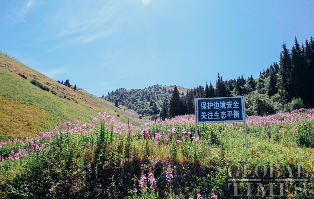 Flowers paint the border between China and Kazakhstan purple. Photo: Shan Jie/GT figcaption >
