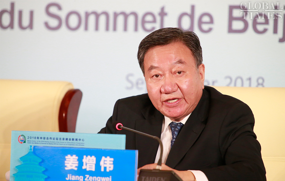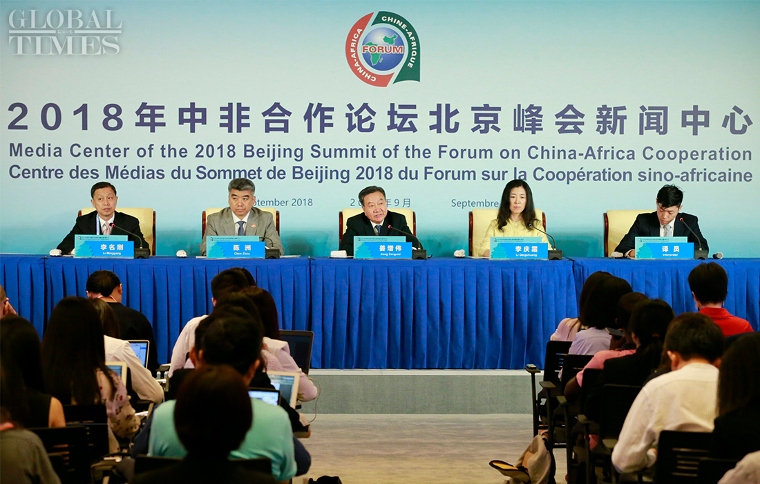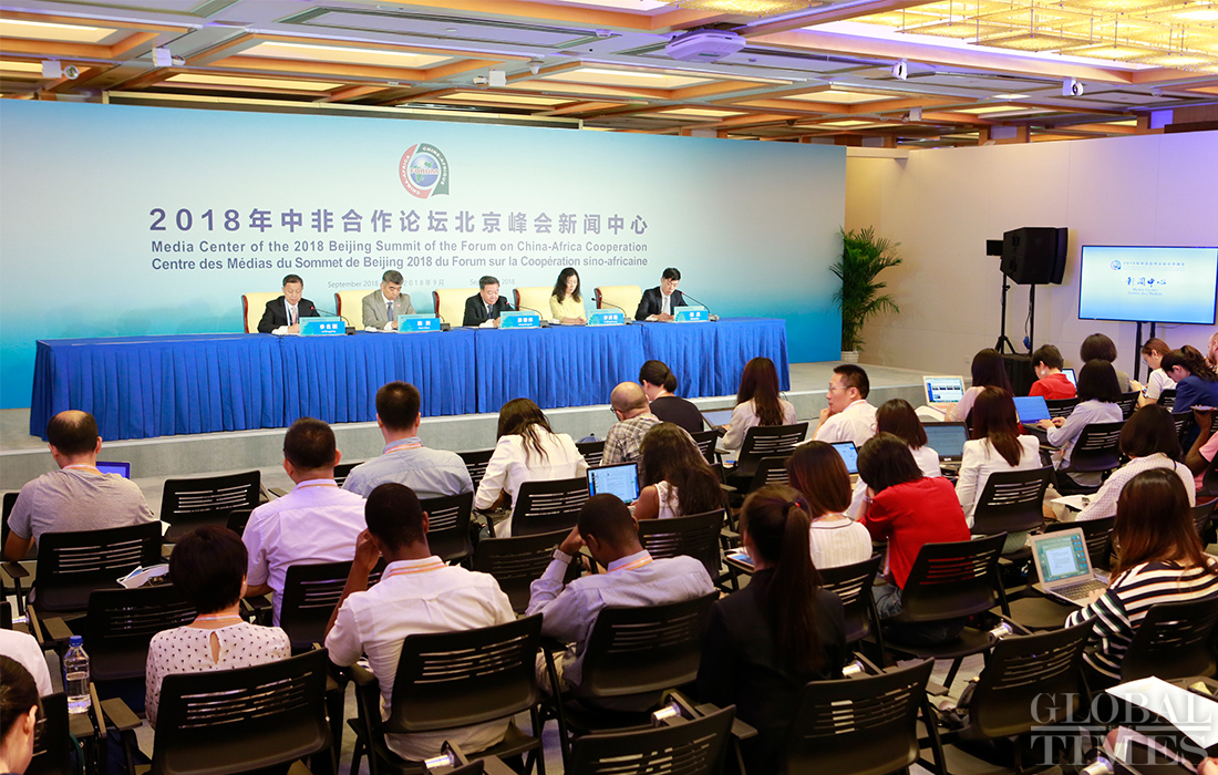 A press conference for the High-level Dialogue of China-Africa Leaders and Business Representatives and the sixth China-Africa Business Forum was held at the media center for the FOCAC Beijing Summit 2018 on Friday. (Photos: Li Hao/GT)