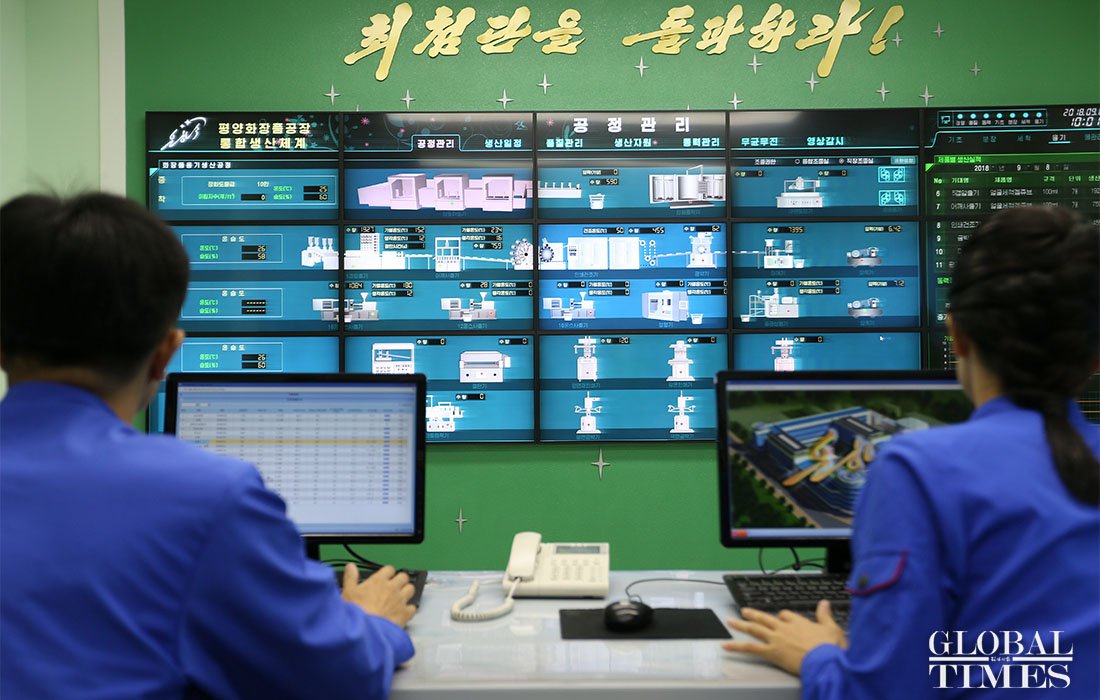 Workers monitor the equipment of different plants in a digital monitoring room on September 8. figcaption >