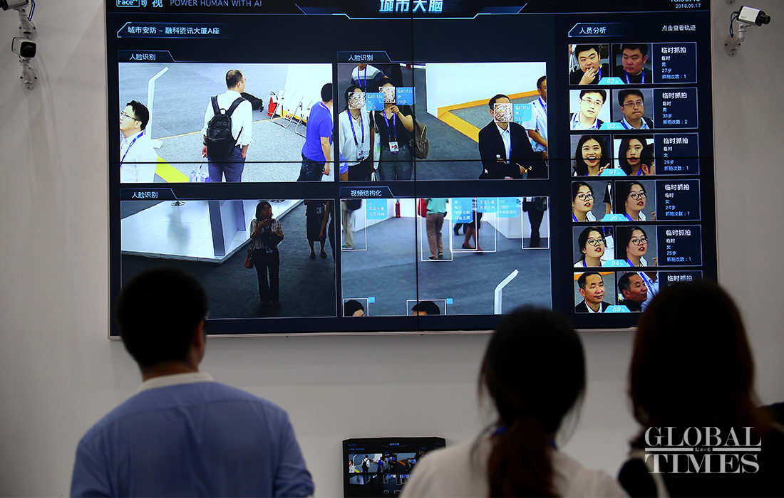 Visitors look at a facial recognition system used for urban security. Photo: Yang Hui/GT figcaption >