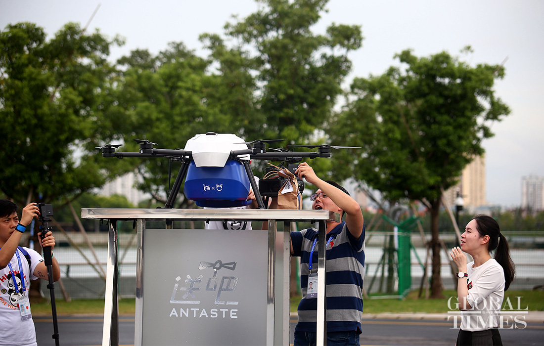 A drone for coffee delivery Photo: Yang Hui/GT figcaption >