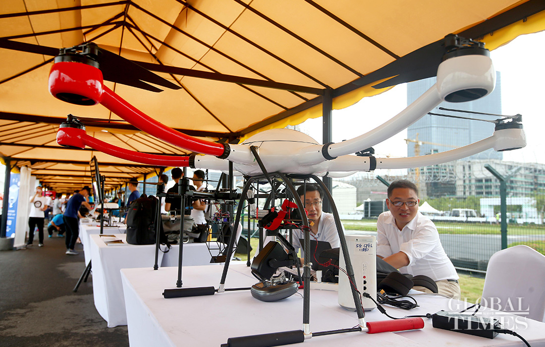 Drones are being displayed at the conference. Photo: Yang Hui/GT figcaption >
