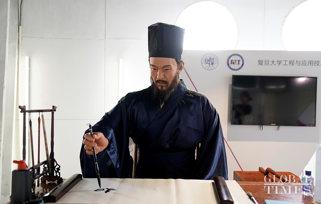 A robot performs calligraphy. Photo: Yang Hui/GT figcaption >