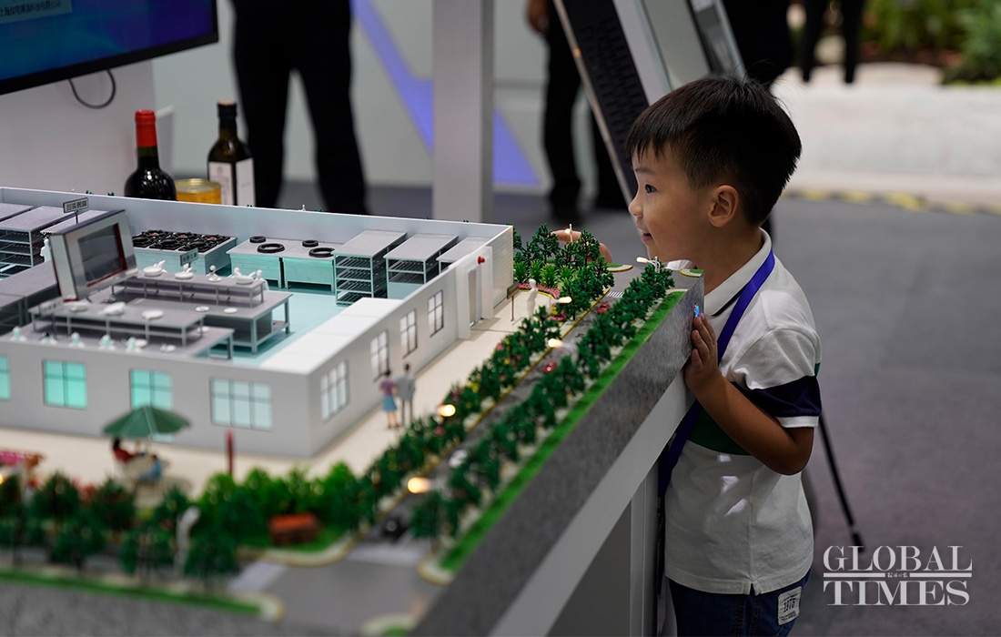 A kid looks at a model displayed at the conference center. Photo: Yang Hui/GT figcaption >