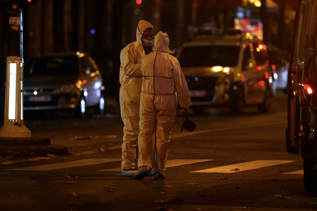 Officials investigate the scene outside the Bataclan concert hall after an attack on November 13, 2015 in Paris, France. According to reports, over 150 people were killed in a series of bombings and shootings across Paris, including at a soccer game at the Stade de France and a concert at the Bataclan theater. Photo: CFP/ Xavier Laine/Getty Images figcaption >