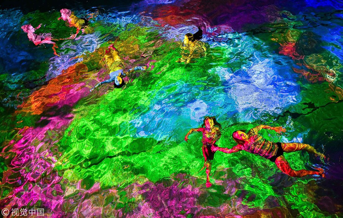 An interactive artistic installation by Swiss visual artist Pipilotti Rist and the World Wide Fund for Nature at the Hirschengraben indoor pool in Bern, Switzerland, allowed people to swim in waters lit in different colors. The piece was created to bring attention to the disappearance of coral reefs due to the warming and the acidification of the oceans. (Photo: VCG)