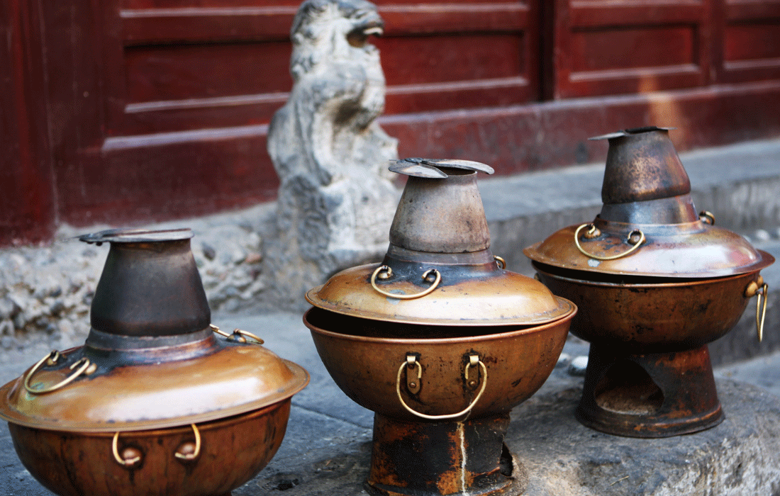 Nothing fights off the winter chill like a dinner of Beijing hotpot. A hearty symbol of old Beijing, hutong dwellers can be found surrounding a traditional copper hotpot of boiled meats and vegetables in broth to make Beijing’s dry and long winters a little more bearable. figcaption >